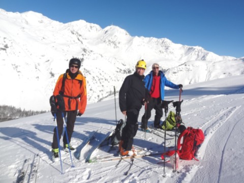 Et pour cette 1° : 1050m de dénivelé. Bonne ambiance, neige poudreuse, ciel bleu, soleil.