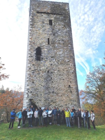 Nous voilà donc, après l'échauffement, parti(e)s pour une sortie vers la Tour de Vidalos et, en suivant, le Mamelon du Nageau.... le tout, d'un bon pas car il fait frais ce matin.... Comme à l'accoutumée, nous empruntons le Chemin du Comte Nord et, après une courte halte dans la plaine d'Ayzac, nous continuons jusqu'au pied du raidillon de la Tour de Vidalos... Tout le monde marche d'un bon pas dans cette partie plate ...( même d'un pas remarquable puisque nous étions à 6,6 km/h, apparemment 😳😳😳).